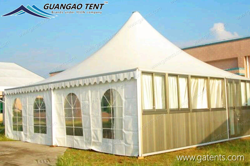 The Pagoda Tent is a new type of temporary building for outdoor activities. The peaked tent is an economical tent, and its main features are that it is light, faster to install than conventional tents, and more economical and practical. It can meet the customer's requirements for the size of the cone-top tent. In particular, the awning cloth made of imported synthetic fibers and three layers of PVC materials is selected. The tarpaulin weighs 650-850 grams per square meter, and its performance fully meets the European and American standards. The frame part is exquisitely processed and handled in accordance with safety standards.