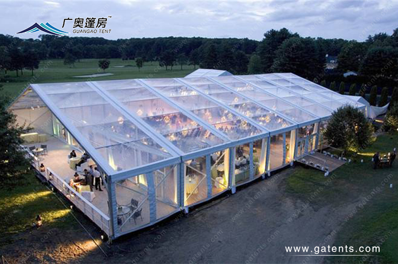 廣奧建造餐廳篷房造型多,包含人字形、拱形、弧形、球形、組合型等等。篷房材料:PVC篷布、鋼化玻璃墻、ABS墻體、高強(qiáng)度純6061-T6鋁合金框架等。使用壽命長(zhǎng)達(dá)20多年,室內(nèi)配套齊全,篷房結(jié)構(gòu)穩(wěn)固耐用。